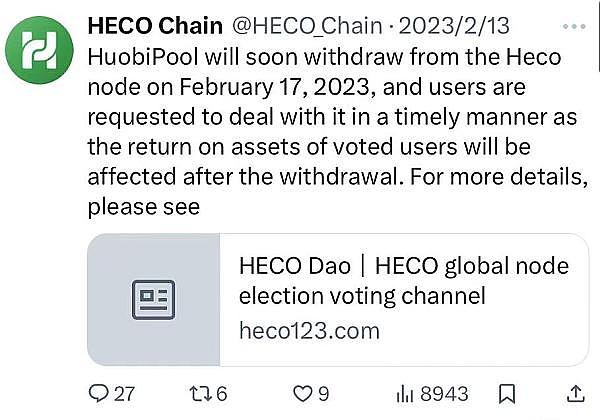HECO的官方推文,只更新到了2023年2月13日