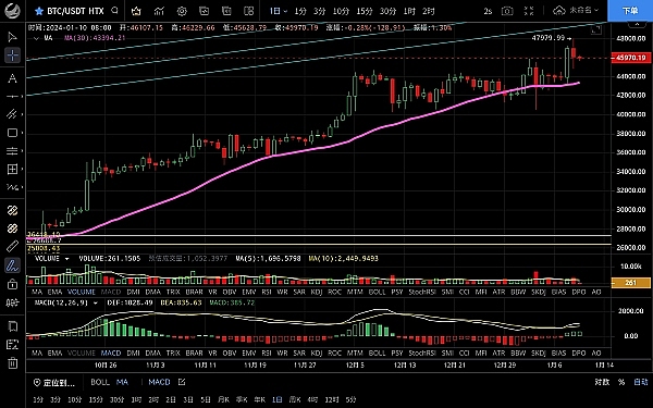大饼昨日白盘呈震荡修复状态,低位跌至45500附近支撑反弹,凌晨行情拉升**触及47980一线受阻迅速回落,恭喜跟上昨日思路的朋友多单获利2000点,目前币价在46040附近运行,四小时级别价格虽突破前高但未能站稳迅速回落,k线收大阴上下均有影线,可见多空博弈力度都挺强,macd多头逐步缩量双线拐头向下有高位死叉迹象,短期来看上涨受阻有回调需求,预计力度不会太大,日线级别价格正好回踩至ma7均线支撑,整体仍是多头走势,是否能延续还是需要**还是关注消息面,若利好很有可能先跌后涨,今日行情会很**注意做好风控,思路建议回踩低多为主高空为辅,稳健者观望,上方压制47000-48000,下方支撑44800-43300