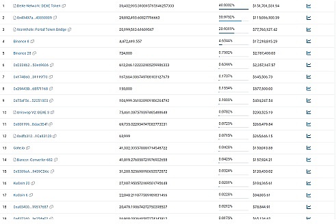 除了DeXe总合约的40%占有外,跨链桥Wormhole中的Token占比也超过了20%