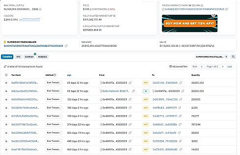 同时,持仓列表中的许多地址持有相对较小的**量,表明该**在广泛的投资者中有**的分布,可抛售和运作的整体筹码比较平均,抛开前三的项目合约外,整体的筹码分布较为健康,并无**的持仓者控制DEXE的价格走势。