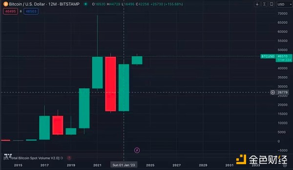 2023 年,比特币飙升了 155%。其中大部分涨幅是在贝莱德 (BlackRock) 6 月份令人惊讶地申请比特币 ETF 后实现的。 比特币的交易价格从 6 月 15 日的 25,500 美元左右的低点升至目前的 46,000 美元左右。