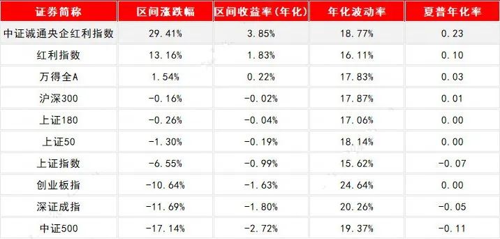 Wind数据显示,2016年12月30至2024年1月9日,中证诚通央企红利指数年化收益率为3.85%,年化夏普比率为0.23,明显优于上证指数、万得全A、沪深300等A股重要宽基指数。从中长期角度看,或具备较高的性价比。