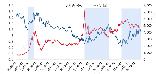 从历史上看,高股息策略不仅是“震荡行情避风港”,由于其高分红指数低估值 高股息特征,市场面临调整阶段,往往有更好的相对收益。