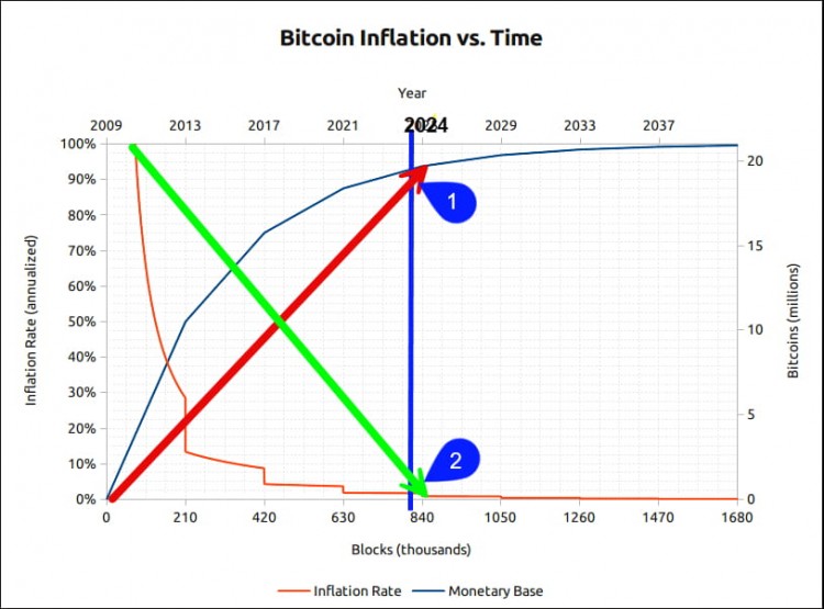 2)比特币的通货**率每四年减半,以补偿这些变化。