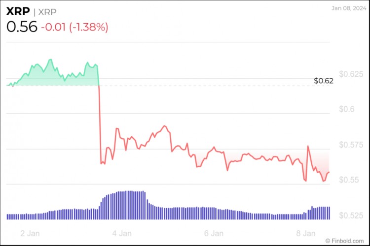 截至撰写本文时,XRP 交易价格为 0.5597 美元,过去 24 小时跌幅为 -1.38%,上周跌幅为 -9.56%,过去 30 天跌幅为 -18.13%。