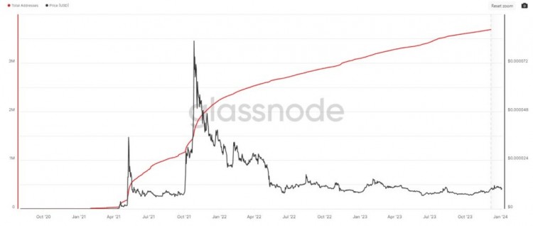 DesPite recent struggles with its price,Shiba Inu(SHIB) retains investors’ confidence, which can be seen through the opening of new addresses, and recently, SHIB surpassed the 3.74 million threshold in addresses, according to statistics from data platform