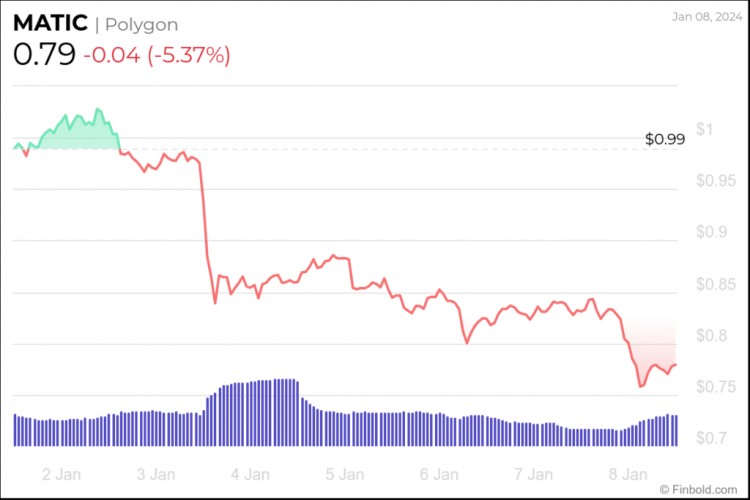 Currently, MATIC is trading at the price of $0.79, marking a decrease of -5.37% in the last 24 hours, as well as a downside of -20.08% over the previous 7 days and -15.25% in the last month, as per latest data from January 8.