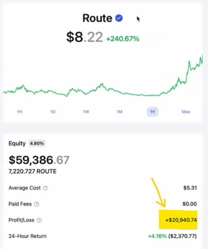 $ROUTE pnL: $20,742.45