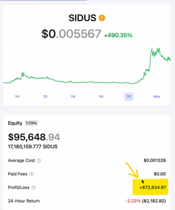 $SIDUS 盈亏: $72,892.32