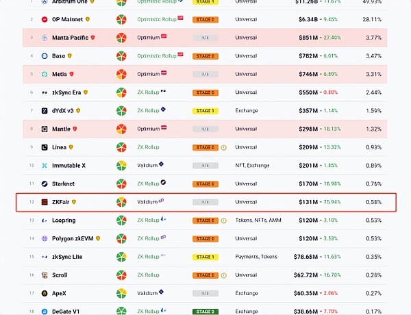 受质押开放等利好,ZKF TVL再创新高,当前 TVL 1.32亿美元,位列 L2 榜单**2名,涨幅更是高达76%。ZKFair 主网上线才半个月时间便发展迅速,靠的就是**的技术跟理念才走到今天这个位置,某种意义上,ZKFair 站在其他头部Rollup项目的技术成果之上。