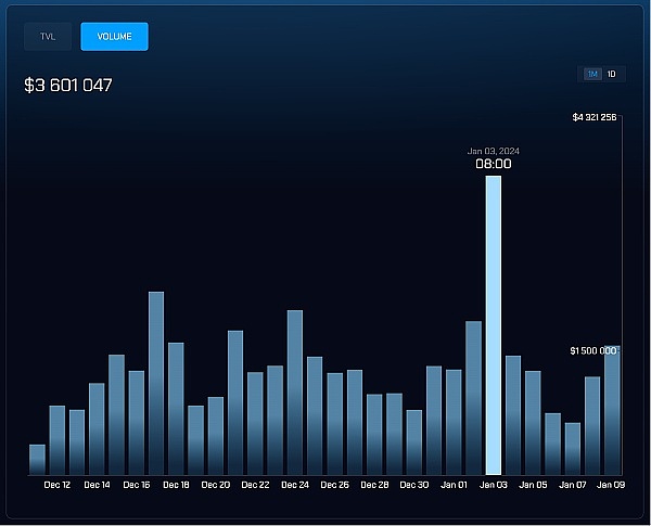 今年(2024 年)的 1 月 3 日,24 小时交易量达到了**:360万美元