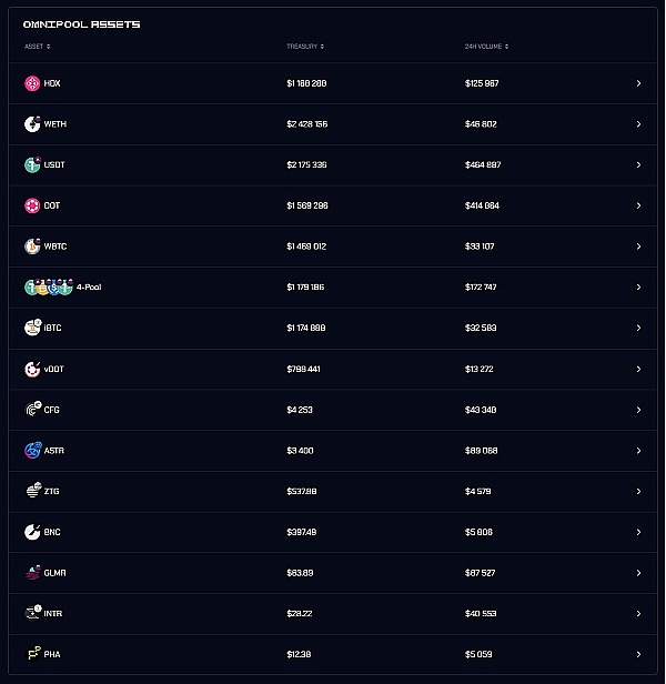 目前,Omnipool 内的币种数量已达到 17 个: