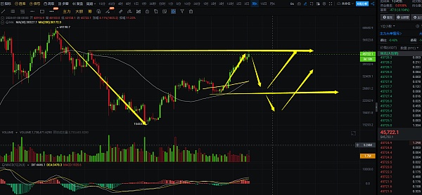 现货ETF落地后,消息面对行情的影响也就算告一段落了,后市行情还是回归到技术面上来了,大饼周线走势上看,现货ETF的预期导致大饼不断反弹,在靴子落地后行情没有去突破短线的压力位置,目前大饼**反弹点位在48100位置,前面短线高点位置在48200,这里是有比较大的压力的,如果这个压力突破,行情就要直接来牛了,但就现在这个市场环境和圈内资金来说,是不足以支持牛市直接来的,这里我个人不是很看好继续反弹,市场很大机会在1月后面的时间内开始走下跌,然后在底部震荡吸筹,**减半,加上降息等一系列事件来启动牛市;大饼周线级别上关注压力48660附近,不给到有效突破,行情就会开始走回调,回调区间预计在27900,22430,27900附近是这波的起涨点,是有很大机会能走到的,后市交易上大家就关注上方压力48660有效破位情况,破位后的下个压力点位在57700附近,自行把握进场机会;短线交易,控制风险,盈亏自理;