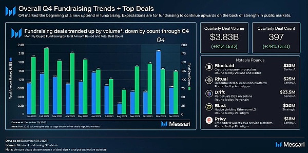 Messari:2023年Q4融资额达38.3亿美元,环比增长81%,其中Ritual融资2500万美元