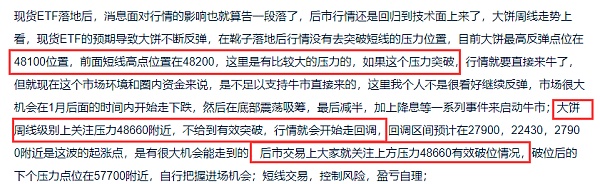 昨日我们分析了大级别的方向,大级别我个人是看好下跌,昨日我们说压力位在48660附近,大饼昨晚给到一波拉升,**点位在48990位置,到达后收针下来,说明该位置压力有效,以太目前也回到了2600下方,周线只要收到2550下方,那下跌也就基本确定了;白盘的消息面上看,日内现货ETF已经开始交易了,交易量达到了46亿美元,但价格涨了没,并没有,并且有的已经跌破了发行价,这些都能够说明市场现在热点过去后,没有很大的上涨动能了,后市下跌的机会也就增加了,交易上大家可以转换思路做高空;