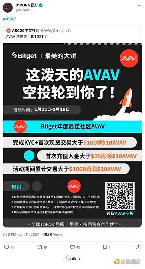 不过近期最能体现AVAV影响力的是,知名内容创作平台91PORN官方转发了ASC20中文社区发布的AVAV上线Bitget的推文。