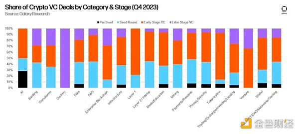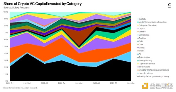 贸易和 Web3 公司继续占据主导地位,但人工智能正在呈现增长。 为投资者提供买卖加密货币方式的公司继续在融资中占据主导地位,但 Layer 2 和互操作性投资在第四季度有所增加,Wormhole bridge 筹集了大量资金。 人工智能正在成为一个更有趣的类别,有几家初创公司进入了这个领域。
