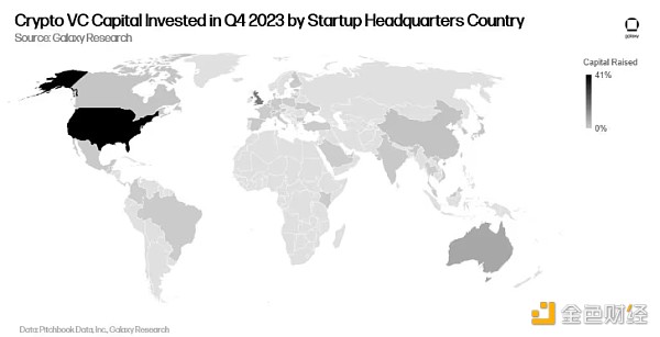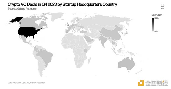 2023 年,美国在交易数量和投资方面继续占据主导地位。第四季度近 40% 的交易涉及总部位于美国的初创公司。