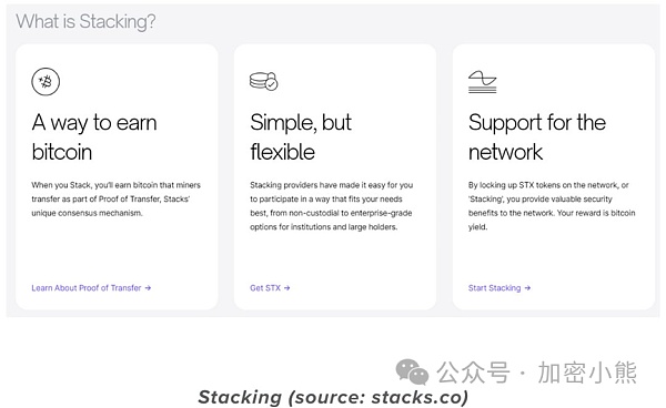 Stacking协议可确保了Stacks网络的安全,并为Stackers提供了以比特币为单位的实际收益(目前约为7%)。收益与网络活动有关。随着网络使用效率提升,区块空间更值钱后,随之矿工需要支付的BTC成本也会相应提高,STX质押者的收益也随之提高。