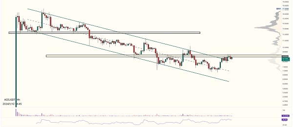 另外最近的bn新币实际走势都很像,(走势比较接近的还有 Sols ) 都是类似的通道下跌洗盘,但是ace这种确实目前看着不是很强势表现,受制于每一个区域的技术盘抛压,可能是套牢盘太多了?前一阵一直在炒要上upbit的预期,不过都可以关注右侧的机会。