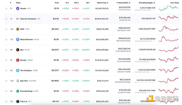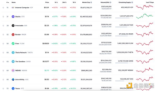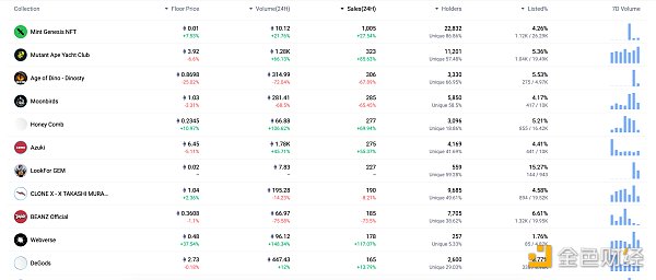 24小时NFT交易量、交易量前十项目 数据来源:Coinmarketcap