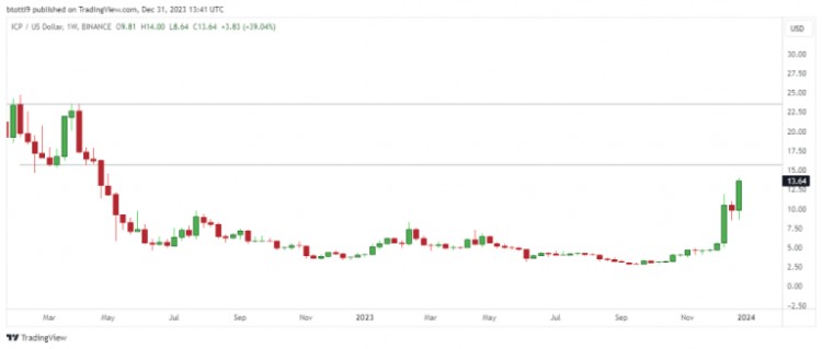 目前,ICP价格高于13.30美元,在过去30天内上涨了184%,并于12月31日达到了14.00美元的盘中高点。