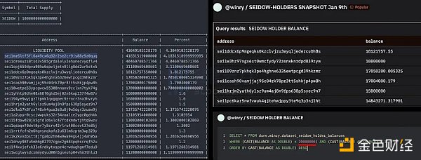 Seidow 的持有者列表查询排除了持有超过 2% 的钱包