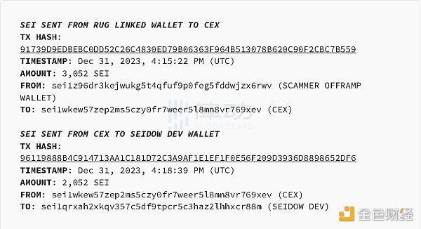 我将用一些**的信息来总结这个问题。其中一个链接的 rug 钱包的交易(也恰好是他发送所有 SEI 的钱包,他刚刚清仓),我认为是向 Shadow 的 CEX 发送的 3,052 SEI,然后他向 Seidow deployer 发送了 2,052 SEI(不是他两小时前发布并摧毁的 Seidow)。我不知道 Shadow 对 52 这个数字的着迷是什么,但你可以在我收集的所有数据底部看到这是一个常见的事件。