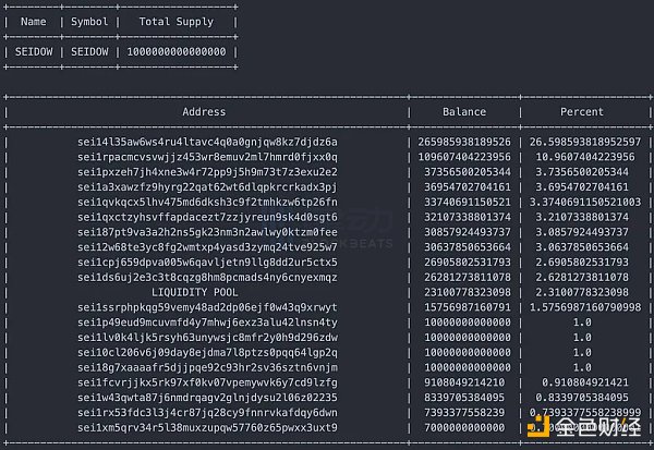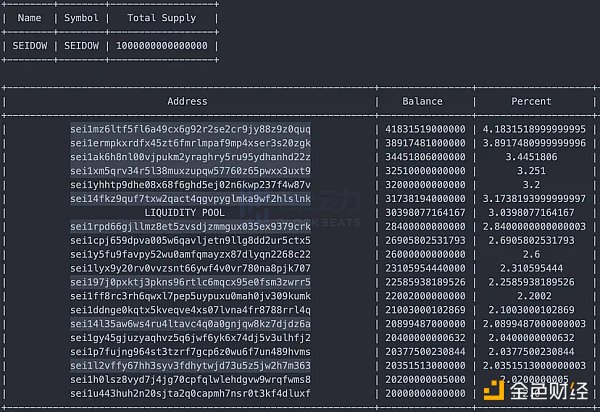 事实证明,Shadow 从两个不同的钱包购买了**,但在一个钱包中提前出售了**,同时将另一个钱包中的所有**转移了出去。接下来的步骤是查看那 3.02 亿 Seidow Token **流向何处,以及 Shadow 是否仍在持有它们。我通常会查看**的持有人列表,以检查分布情况,并看看**被转移到哪里。不幸的是,Seiscan 并不能简单地做到这些。所以我再次找一些朋友寻求帮助,重新查询 Seidow 的持有人。
