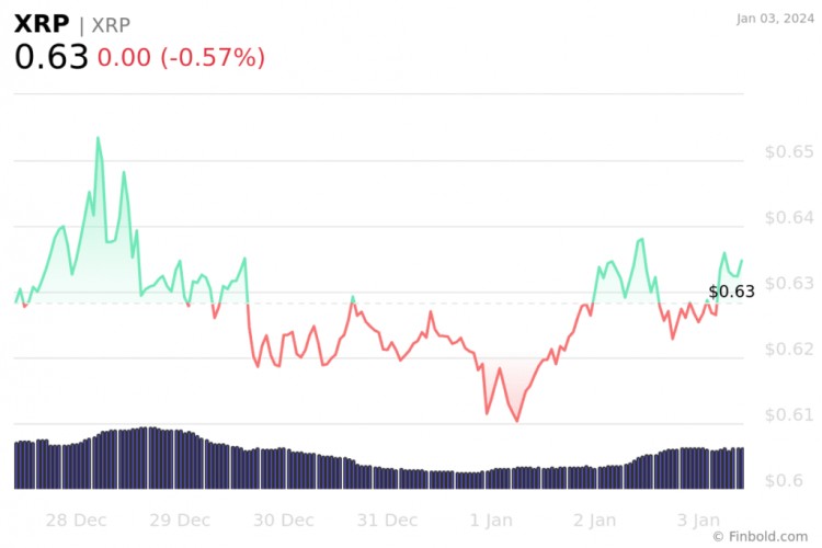 XRP **的交易价格为 0.635630 美元,在过去 24 小时内小幅下跌 -0.57%。