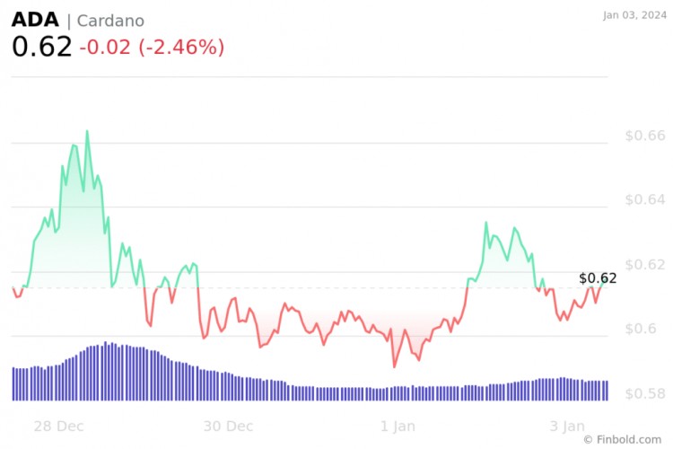 At the time of writing, ADA was trading at $0.617642, marking a decrease of -2.46% in the past 24 hours, contrary to the increase of 1.79% in the previous week and gains of 50.66% in the last 30 days.