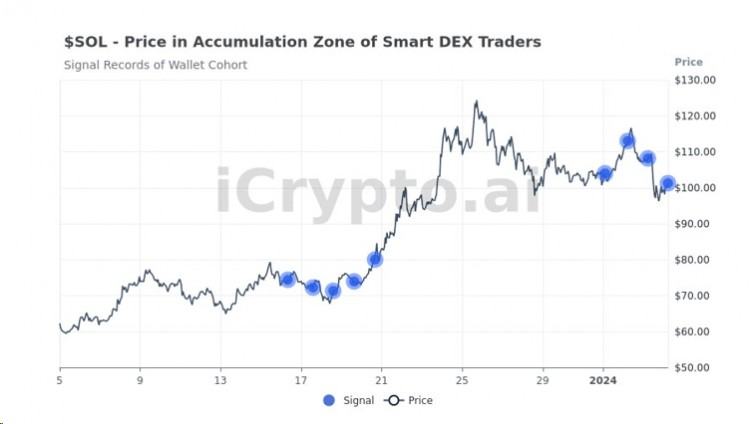 上次我们看到 5 个蓝点时,SOL 的价格在接下来的 7 天内上涨了 55% 以上,从 80 美元上涨到 124 美元。
