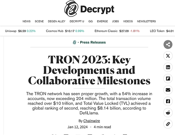权威外媒聚焦:波场 TRON 2023 年度复盘