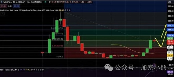 Solana(SOL)的月图显示了显著的反弹,当前交易价格约为23.24美元。图表表明,在大幅下跌之后,价格已经达到**程度的稳定。此次复苏的枢轴点暗示为34.40美元,而斐波那契水平表明潜在阻力位为65.10美元、99.43美元和127.17美元(按升序排列)。50日均线似乎正在提供动态支撑,这可能会增强Solana的看涨理由。此外,RSI显示势头增强,读数为51.62,位于中线上方,暗示投资者的看涨情绪不断增强。