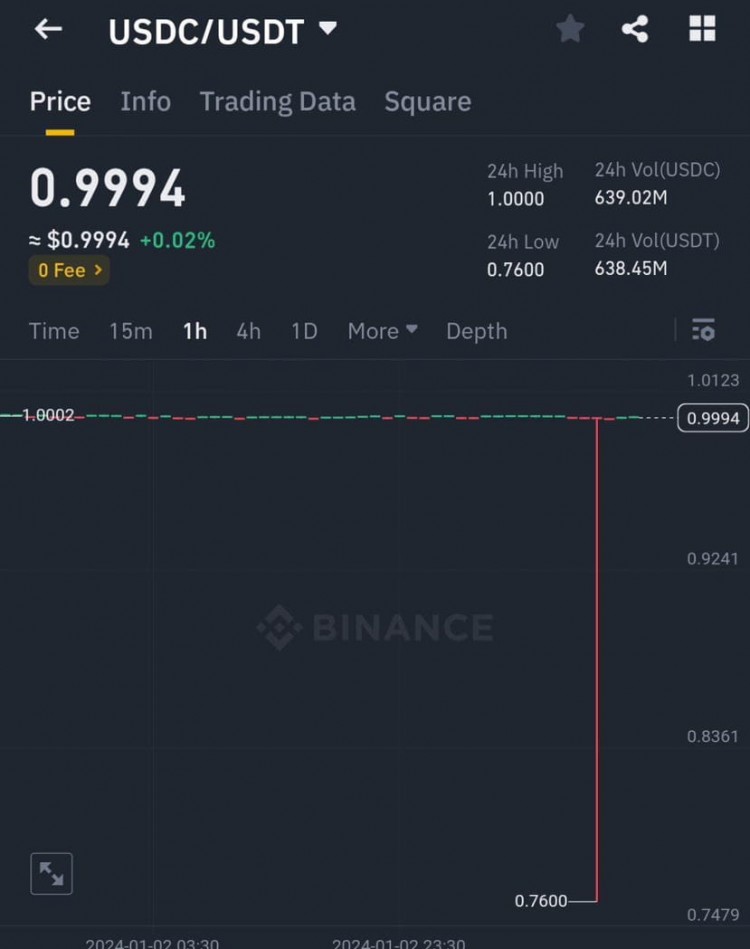 Bitcoin市场崩盘导致USDC/USDT交易对下跌至$0.76,但立即恢复。您对USDC有多少信