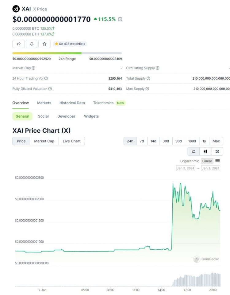 $XAI 进场的消息引发了其价值的显着飙升,飙升了 136.8%,令人印象深刻。