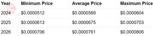 展望到2024年,在社区的支持和主要交易所上市的推动下,BONK似乎散发出了看涨的信号。Telegaon的预测指出,到2024年,这种模因币的**交易价值可能达到0.0000604美元。