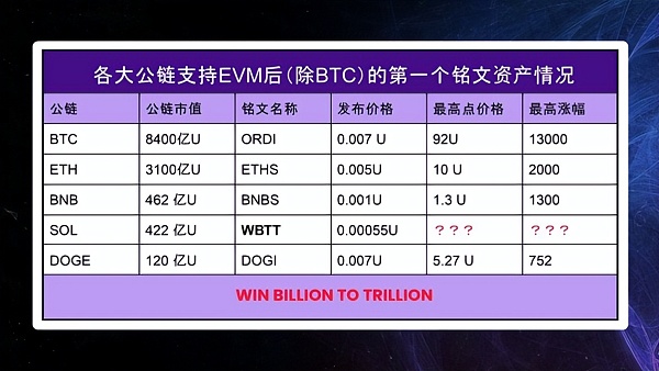 实际上,WBTT 是 Wubit 支持的铭文生态, Wubit 构建了一套铭文资产交易的基础设施方案,包含跨链桥、发射板等系列设施,并长期为各类铭文项目构建价值基础,其背靠数十亿美元市场规模的铭文板块。而未来,WBTT 也将在 Wubit 的铭文基建设施中扮演更重要的角色,并通过长期赋能中不断向外捕获价值,越早获得 WBTT 所获得的价值增益预期越高。