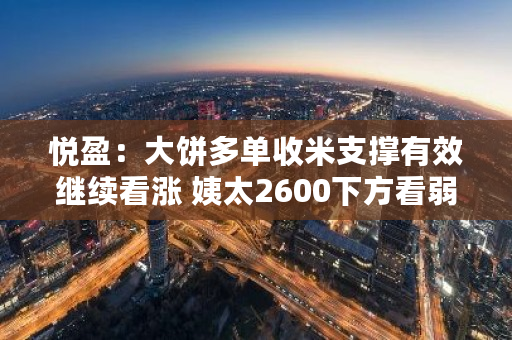 悦盈:大饼多单收米支撑有效继续看涨 姨太2600下方看弱