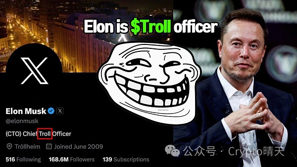 $Troll 是去年3月份部署的**,也是各种蹭的meme币,后来创始人注销推特变成了无主币,这样才开始被社区慢慢发现,**变成了马斯克的又一个香饽饽。