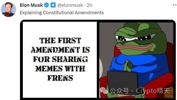 马斯克那么喜欢meme文化,经常发一些meme相关的图文隐喻,通过他成就的meme币非常多,还有几个是**。有些人通过meme币致富,改变了人生轨迹,**祝大家早日暴富!