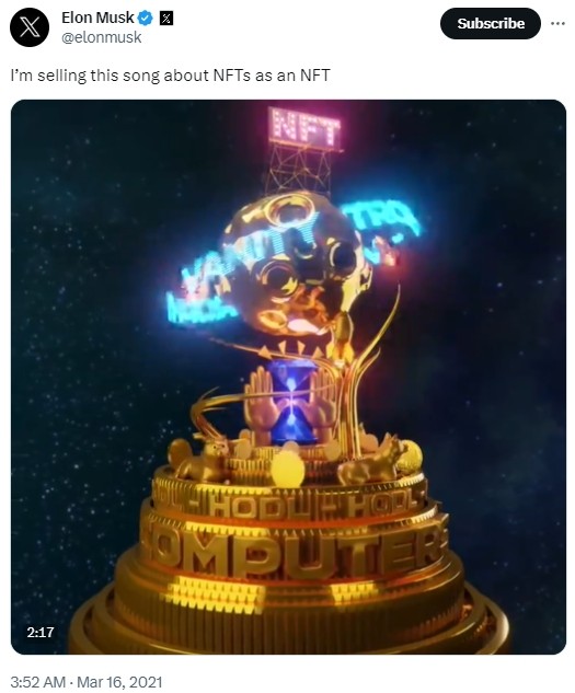 Musk said at the time that he would sell the digital trophies in the video as NFTs.