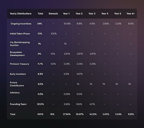 8、流动性引导拍卖(LBA): 1%用于流动性引导。