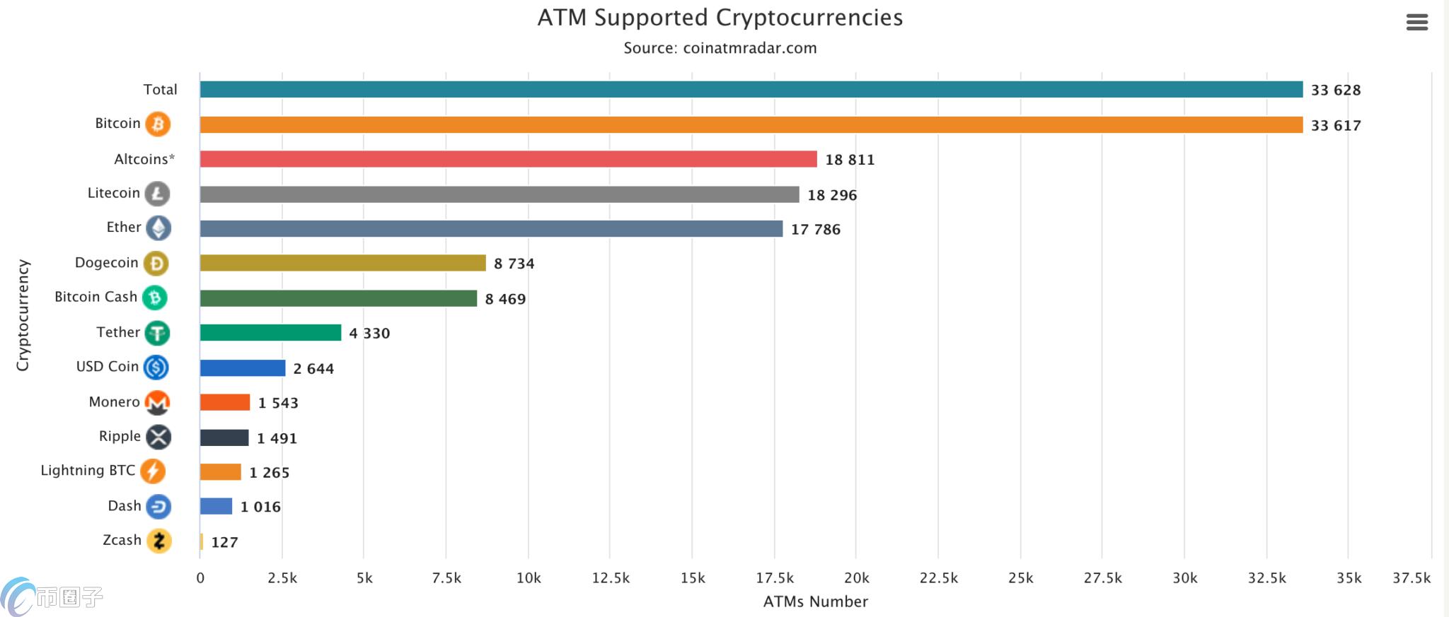 加密货币ATM主要支持币种