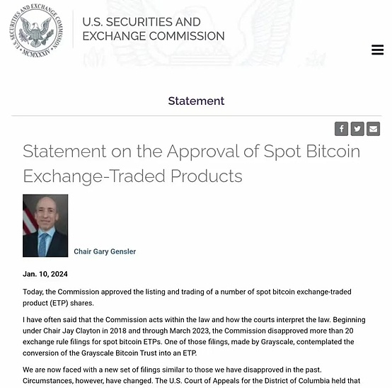 万众瞩目之下,美国东部时间2024年1月10日,美国证券交易委员会(SEC)宣布,已通过加急模式批准了现货比特币ETF上市交易,并授权11只ETF于当地时间周四开始上市交易。
