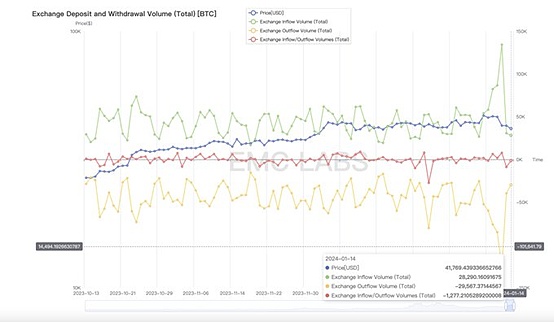 13-14日,BTC存入量快速下跌至5.8万枚,而提出量同步增加,交易所比特币净流出2万枚;所以10-14日,反而是净流出状态,可以视为买方顶住了抛压