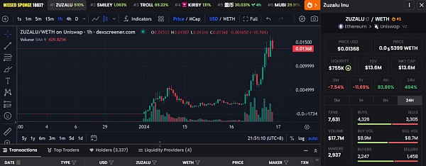 V神力推的Zuzalu惊天降临 同名MEME币ZUZALU竟然狂飙暴涨500%