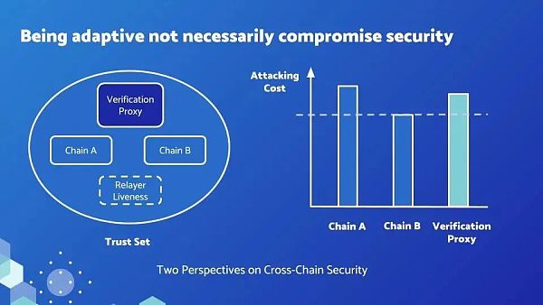 只要跨链双方有一条链的攻击成本/ Attacking Cost 低于公链 ICP,验证代理的引入就不会因为信任集合/ Trust Set 扩大而损害安全性。相比多签或者其他各种外部验证的跨链桥,安全**都高得多。