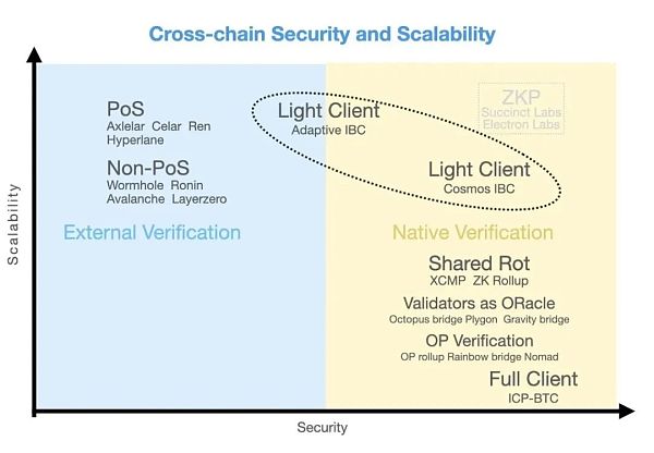 可适应验证技术发展:Adaptive IBC 从通讯层中,进一步拆分了「验证层」并演化出验证代理方案。分层架构的优势之一就是**整个系统互相之间的依赖,所以 Adaptive IBC 可以适应各类验证技术的进步。