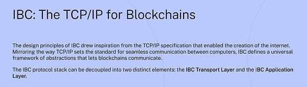 IBC 将跨链拆分为「应用层/ Application」和「通讯层/ Channel」,其简洁性和灵活性堪称区块链的 TCP/IP 协议,就如 IBC 官网自述:IBC 从构建互联网的底层协议 TCP/IP 汲取了灵感。